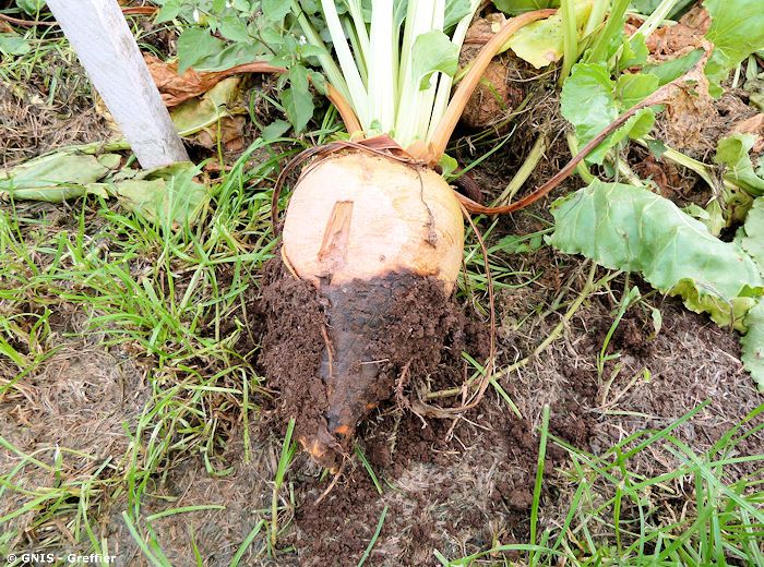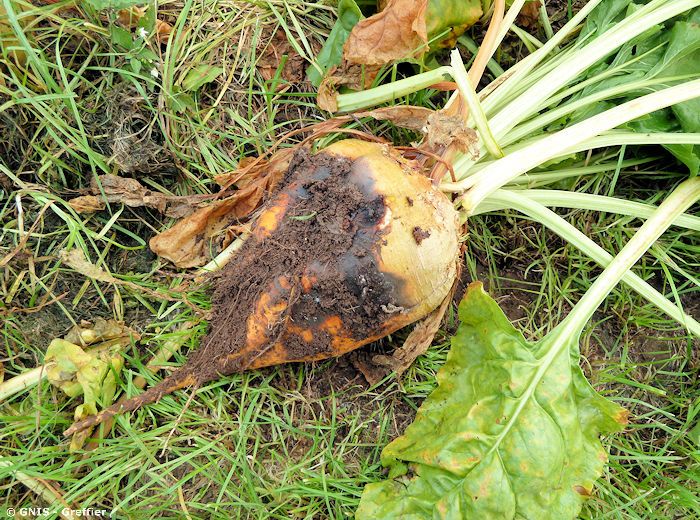 Sur racines, présence de pourriture brune plus ou moins profonde.
