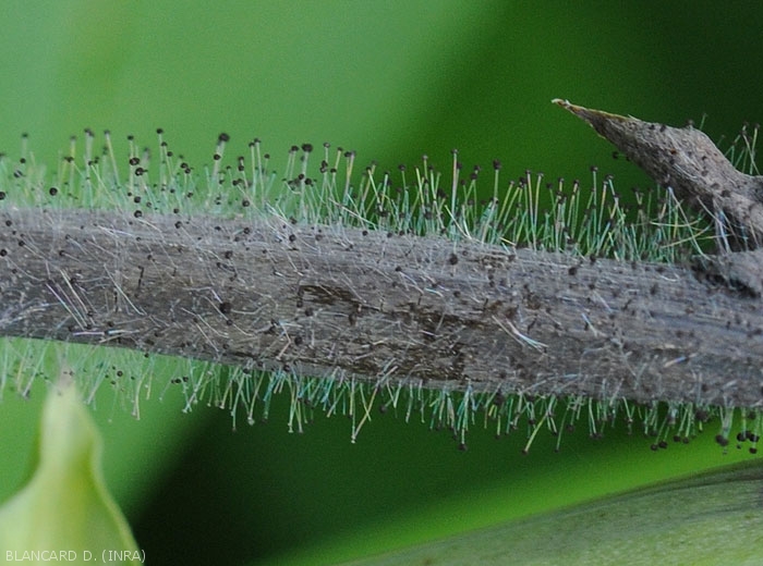 Sporulation : elle est rapide sur les organes pourris avec production de sporocystes portant de nombreuses spores (figures 1 à 4) .