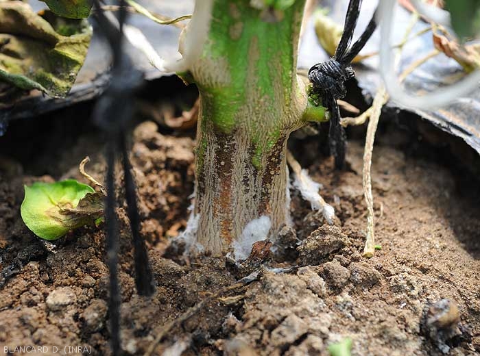 Symptômes de Sclerotium rolfsii sur Solanacées