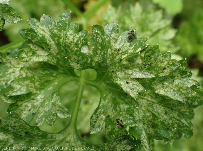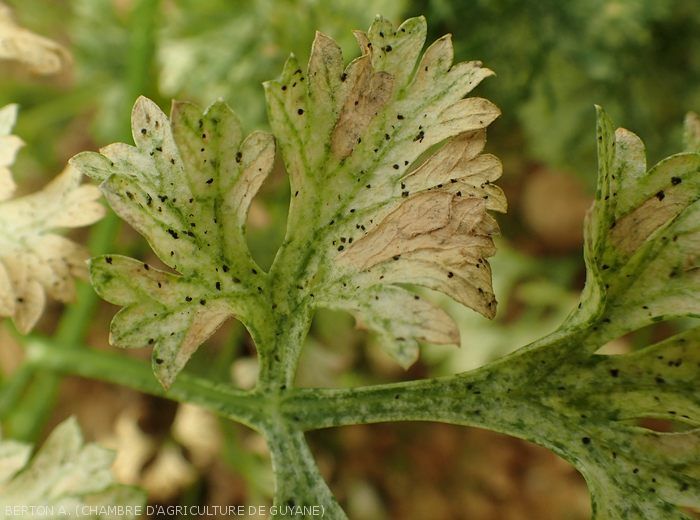 - Plusieurs espèces* affectent les légumes tropicaux, occasionnant des symptômes souvent peu dommageables sur les feuilles et les fruits essentiellement.