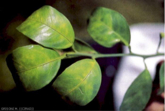- Présence des psylles vecteurs sur l'arbre, présence de fumagine. Ils sont préférentiellement sur les jeunes pousses, provoquent des invaginations foliaires caractéristiques …