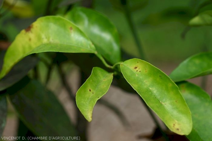 Elles peuvent également être transportées par la mineuse des agrumes (Phyllocnistis citrella).