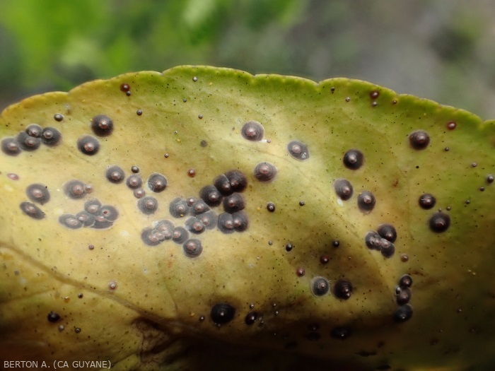 • Fumagine, formant un dépôt noirâtre ayant l'aspect de la suie. La fumagine diminue la photosynthèse et bloque la croissance de l'arbre.