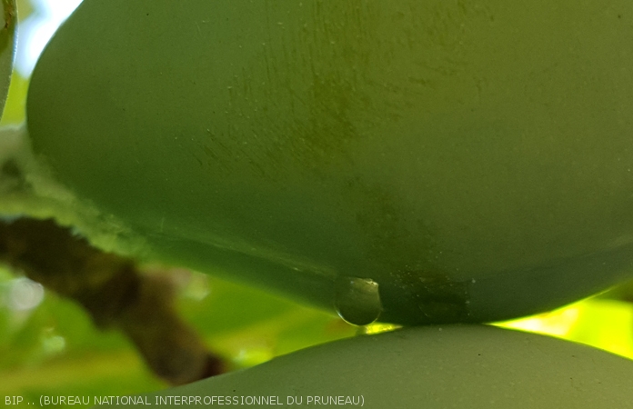 Sur les feuilles, sur le pédoncule ou l'épiderme des fruits, on peut observer un feutrage blanc ou des gouttes de miellat (liquide incolore collant). De la fumagine, champignon saprophyte de couleur noire, peut se développer sur le miellat, liquide fortement sucré. La présence de pucerons farineux ou de cochenille du cornouiller peut également provoquer la présence de fumagine (voir aussi fiches pucerons farineux et cochenille du cornouiller).