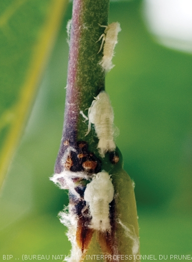 - et indirects avec l’apparition de fumagine (champignon saprophyte de couleur noir) qui se développe sur le miellat qu’ils produisent.