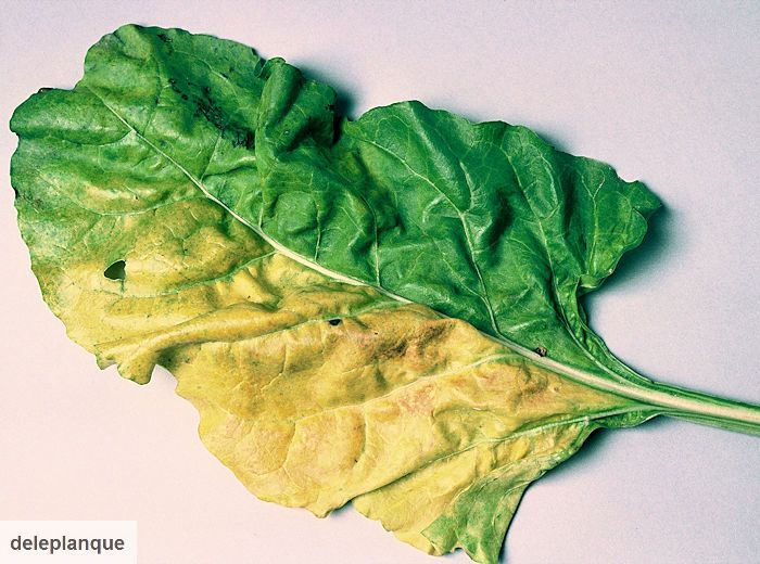 Parfois, rabougrissement et déformation des feuilles du cœur (rarement en France).