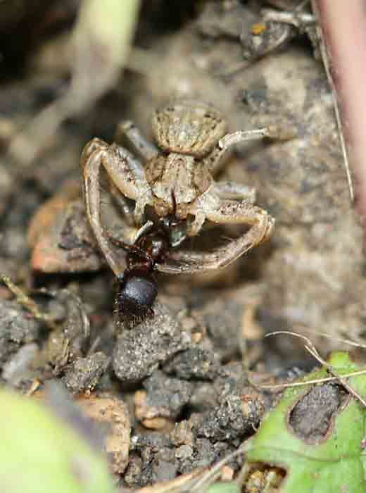 Les restes de coléoptères (élytres ou têtes) retrouvés vides sur le sol sont souvent dus à une attaque par une araignée. En effet, une fois la proie attrapée, l'araignée injecte du venin grâce à ses chélicères dans le corps de sa proie, venin qui liquéfie l'intérieur du corps au moyen d'enzymes digestives avant de pouvoir s'en nourrir. Les parties trop rigides du corps de la proie (squelette chitinisé) sont donc laissées à l'abandon.