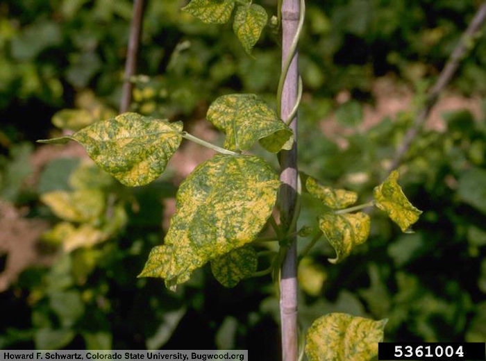 Organisme non transmis par les semences de haricot mais transmissible par les plants porteurs et véhiculé par Bemisia tabaci.