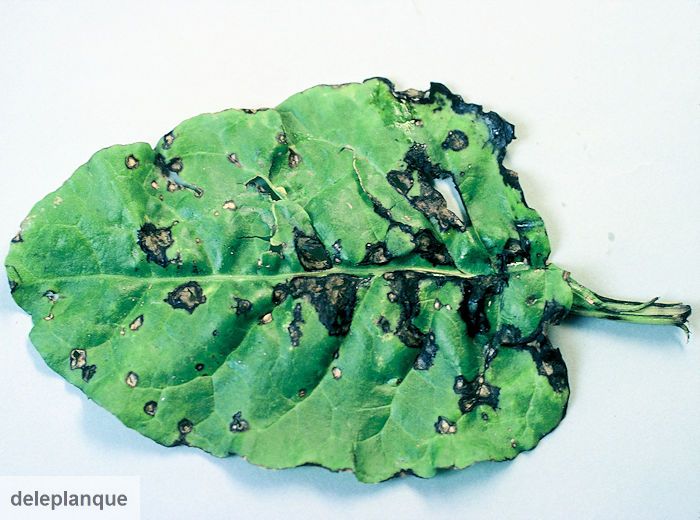 Tâches noires humides et irrégulières sur le limbe