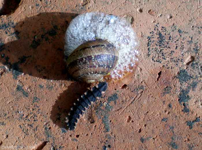 Durant l'hiver, l'escargot reste dans sa coquille, l'obturant grâce à son mucus formant un espèce d'opercule qui sera percé lors de la reprise d'activité au printemps. Dans les parcelles non enherbées lors du débourrement de la vigne, les escargots posent plus de problèmes, car ils sont à la recherche de nourriture. La répartition de ces ravageurs est en foyers, mais ils ne sont pas toujours visibles du fait de leur activité nocturne.