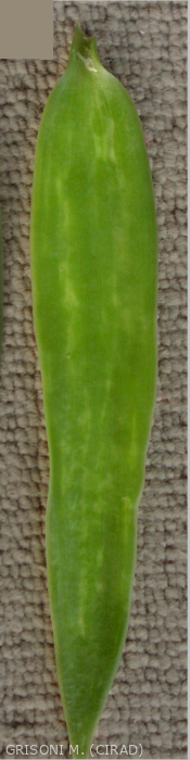 Les symptômes de potyvirus sont en général assez spectaculaires (mosaïques et déformation du limbe des jeunes feuilles), mais s’estompent avec le vieillissement de la feuille. Ils n’ont pas d’impact connu sur le rendement ou la qualité de la récolte sauf en cas de co-infection avec le Cymbdium mosaic virus qui conduit au dépérissement rapide des lianes de vanille.