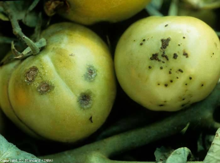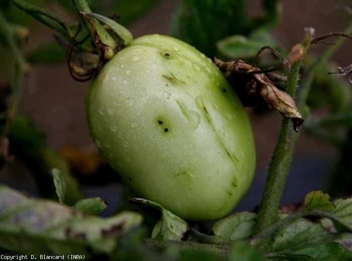Les fruits montrent de minuscules altérations noires particulièrement caractéristiques, assimilables à des chiures de mouche (figure 3). Pour des informations complémentaires sur cette bactérie, vous pouvez consulter la fiche Pseudomonas syringae pv. tomato