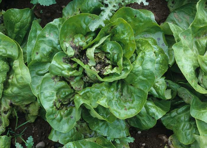 Des différences de sensibilité aux bactérioses sont constatées sur le terrain, entre types de salade (figure 10), mais aussi entre variétés. On note parfois des attaques bactériennes plutôt sur des plantes déjà affectées par une autre maladie (par exemple le "Big vein" ; consulter la fiche Virus des grosses nervures de la laitue (MLBVV).