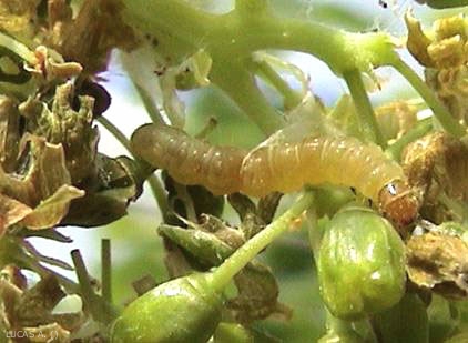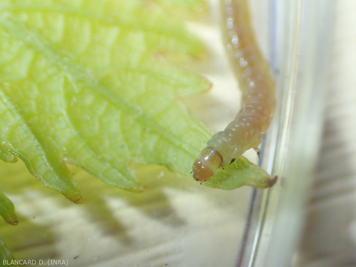 - Les chenilles ont une tête et un thorax jaune brun (figure 3 à 6). Leur taille avant nymphose est inférieure à 2.5 cm.