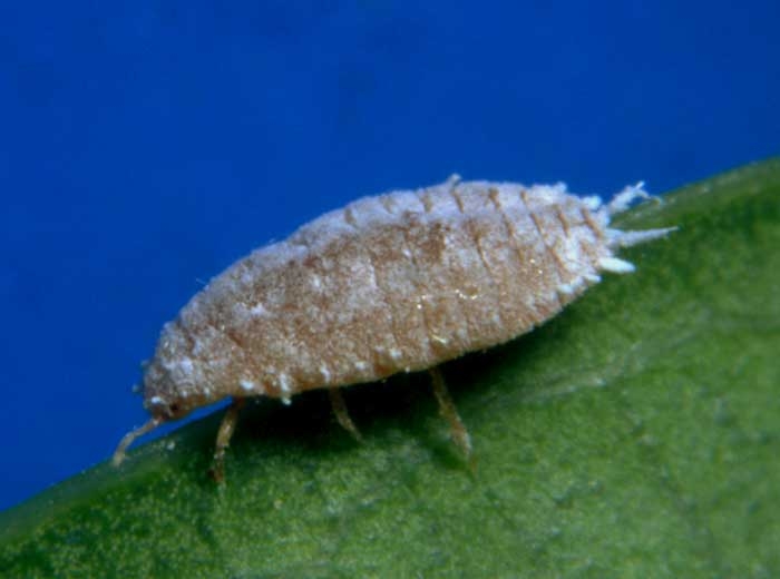 Adultes, de petits moucherons ailés dont la vie est éphémère. Les femelles, mesurant 4 mm de long, ne subissent pas de métamorphose et ne change donc pas de forme. La coloration rosâtre de leur corps est masquée par de la cire farineuse blanche.