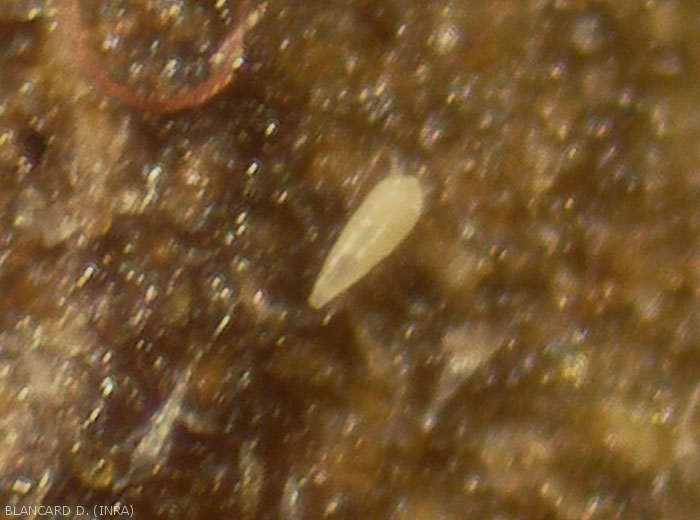 Cycle de développement : A. lycopersici montre 4 stades de développement au cours de son cycle biologique (figure 13) : oeuf, 2 stades larvaires, et adulte.