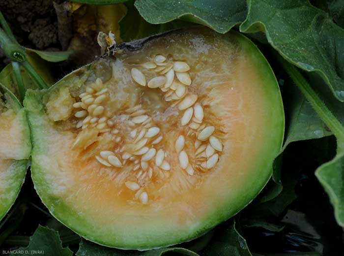 La cicatrice pédonculaire, et la zone pédonculaire sont aussi vulnérables, mais à un moindre degré. La plaie réalisée lors de la cueillette d'un melon, ou les éclatements naturels plus ou moins marqués se formant à maturité des fruits, permettent aussi les contaminations.