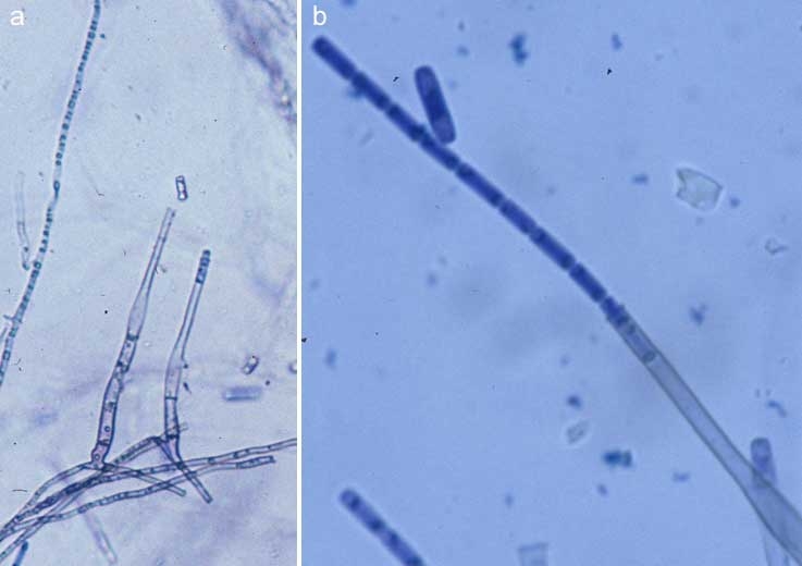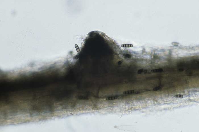 Les chlamydospores, et à un moindre degré, les endoconidies germent à proximité des racines et les pénètrent soit directement à travers l'épiderme, soit par l'intermédiaire de blessures. Le champignon colonise rapidement les tissus du cortex et des vaisseaux qu'il fait pourrir. Dans les tissus lésés, il produit de nombreuses chlamydospores. Il en forme aussi à la surface des racines, en même temps qu'une multitude d'endoconidies (figure 2).