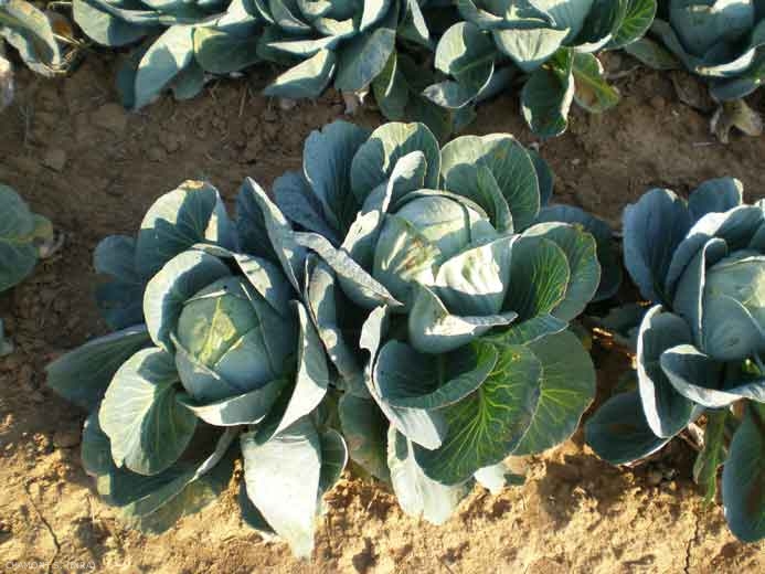 Les choux pommés (var. capitata) sont des plantes basses bisannuelles, à tige épaisse, dont les feuilles serrées et imbriquées les unes dans les autres constituent la pomme (figure 1). Ils sont consommés crus ou cuits. Il existe de très nombreuses variétés différant par leur forme, leur couleur, l'aspect des feuilles, leur calendrier cultural et leur utilisation. Le semis s'effectue en pépinière ou en place, parfois sous serre. Le repiquage s'effectue 4 à 6 semaines plus tard, au stade 5-6 feuilles.