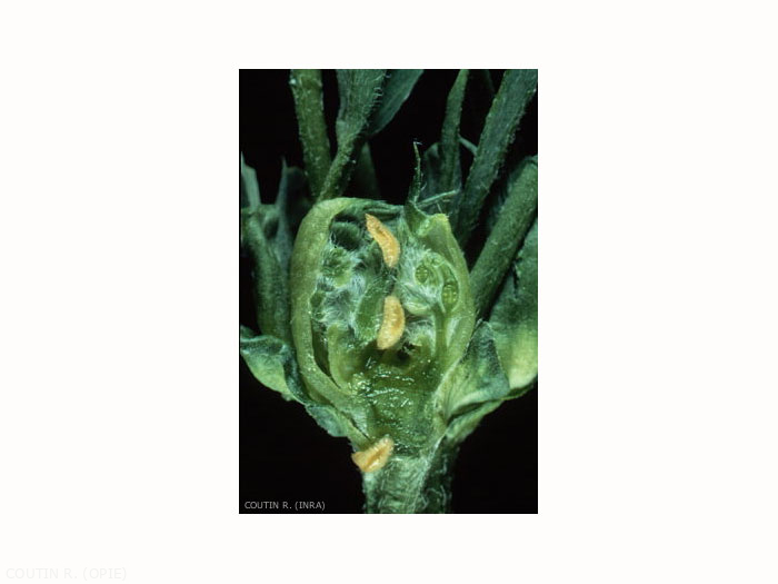 Les adultes apparaissent et pondent dès le mois d'avril. Les oeufs sont introduits entre les jeunes feuilles et les stipules des bourgeons terminaux et latéraux des parties supérieures des tiges (figure 3). La larve quitte le bourgeon attaqué vers la mi-juin et se nymphose dans le sol, dans un cocon.