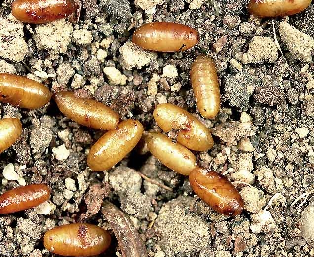 L'oeuf mesure 0,7 mm de long, il est de forme allongée, avec un micropyle tuberculiforme à l'extrémité postérieure (figure 2). La larve est un asticot blanchâtre (dans les olives vertes) ou violet sale (dans les olives noires). On distingue 3 stades larvaires. La pupe ellipsoïdale mesure 3,5 à 4,5 mm de long et 1,5 à 2 mm de diamètre (figure 3).