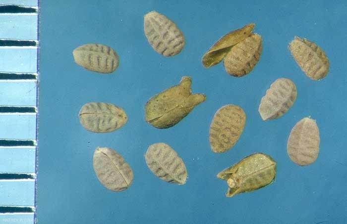 Fruit contenant les graines : coque arrondie +/- carénée.