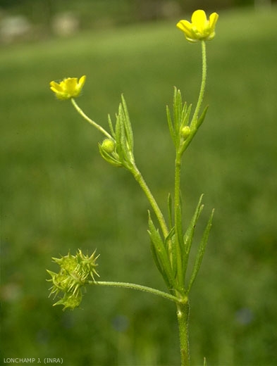 - dénominations européennes : corn buttercup (GB), Acker-Hahnenfuß (D), ranunculo (E), ranuncolo dei campi (I), patalôco (P), ager-ranunkel (DK)