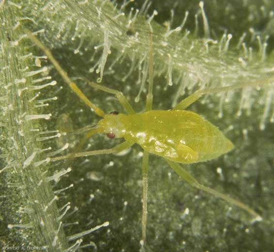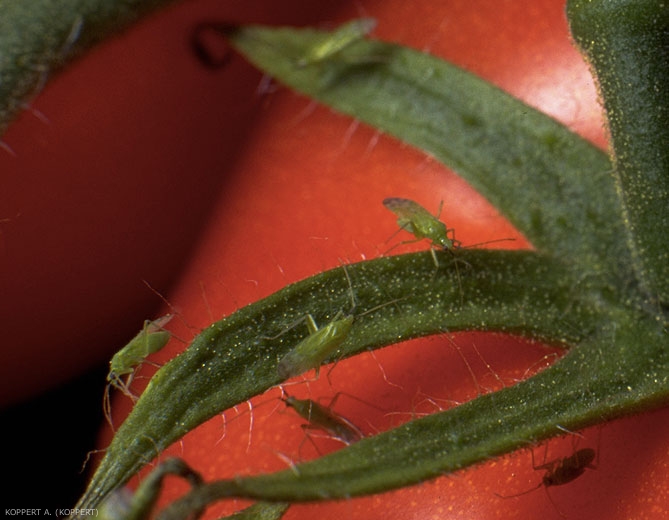 Avec leurs longues pattes, les larves et les adultes peuvent se déplacer rapidement, ils ne sont pas gênés par les poils glandulaire des plantes de tomates.