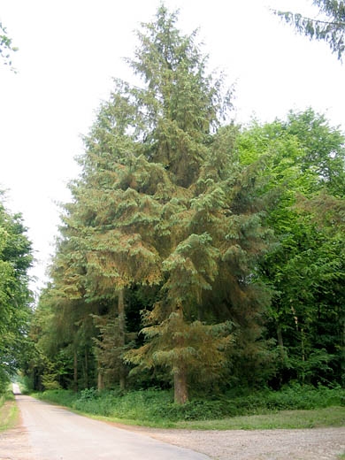 . les défoliations sont aisément reconnaissables par leur caractère partiel, seul reste un petit toupet en bout de pousses (aiguilles de l'année).