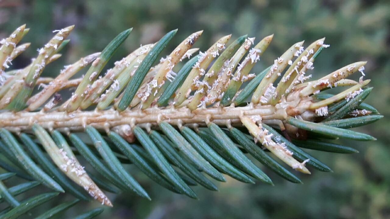 En peuplements denses et lors d'hygrométrie élevée, il y a des risques de dégâts importants par chute des aiguilles en cas de forte attaque (affaiblissement des sujets).