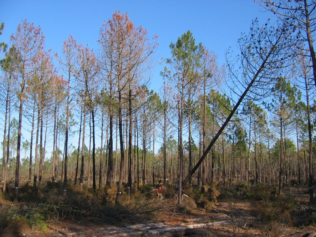 Le nématode du pin peut conduire à l’apparition de symptômes sévères, allant jusqu’au flétrissement généralisé des arbres puis leur mort.