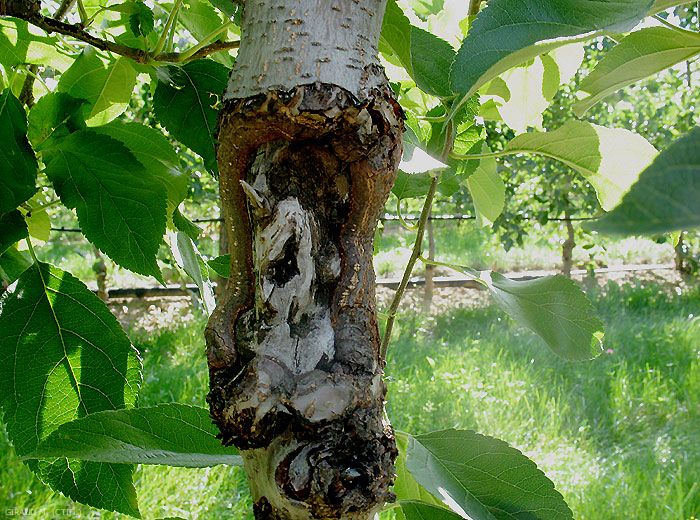 Le chancre peut abriter des ravageurs ou des maladies secondaires (puceron lanigère, sésie, pourritures diverses) qui viennent s’installer à la suite de ces attaques.