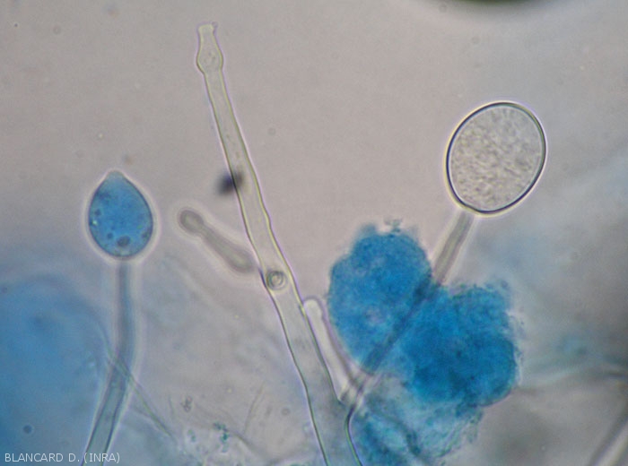 - oospores (figure 1) issues de la reproduction sexuée se formant dans les tissus altérés ;