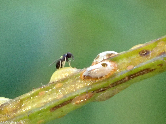 Les Coccidae ou lécanines sont parasitées par deux familles d'hyménoptères Chalcidoidea : Encyrtidae (genres Metaphycus et Blastothrix) et Aphelinidae (genre Coccophagus, figures 3 et 4).