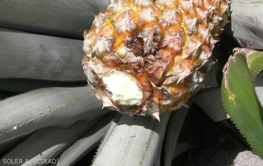 - Chenille foreuse de l'ananas (Strymon megarus). Cette chenille facilite également la propagation du champignon.
