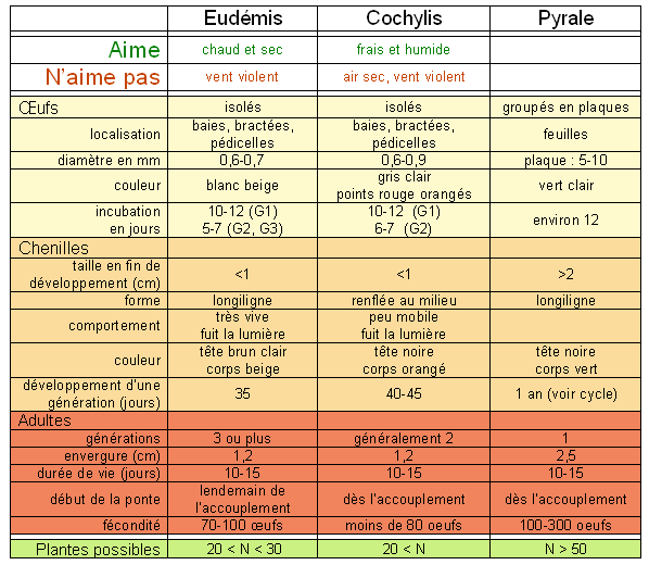 Alcuni criteri di identificazione per i 3 principali vermi dell'uva sono presentati nella tabella in figura 12.