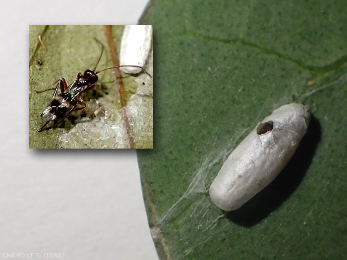 Negli endoparassitoidi (Figura 2), lo sviluppo larvale avviene interamente all'interno dell'ospite. Ciò implica alcuni adattamenti, in particolare a livello respiratorio e immunitario. Il corion embrionale così come l'esuvia larvale rimangono quindi attaccati alla parte posteriore del corpo, formando un legame tra la larva del parassitoide e la cuticola del suo ospite.
