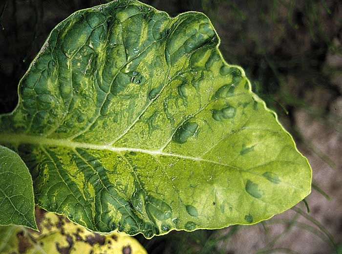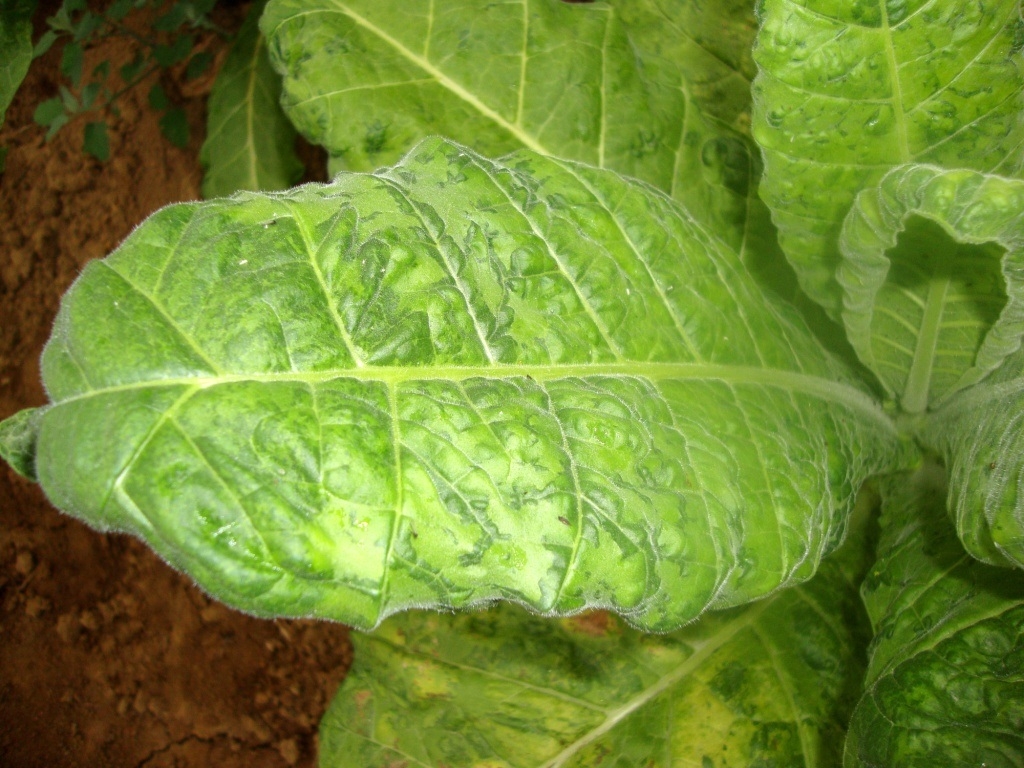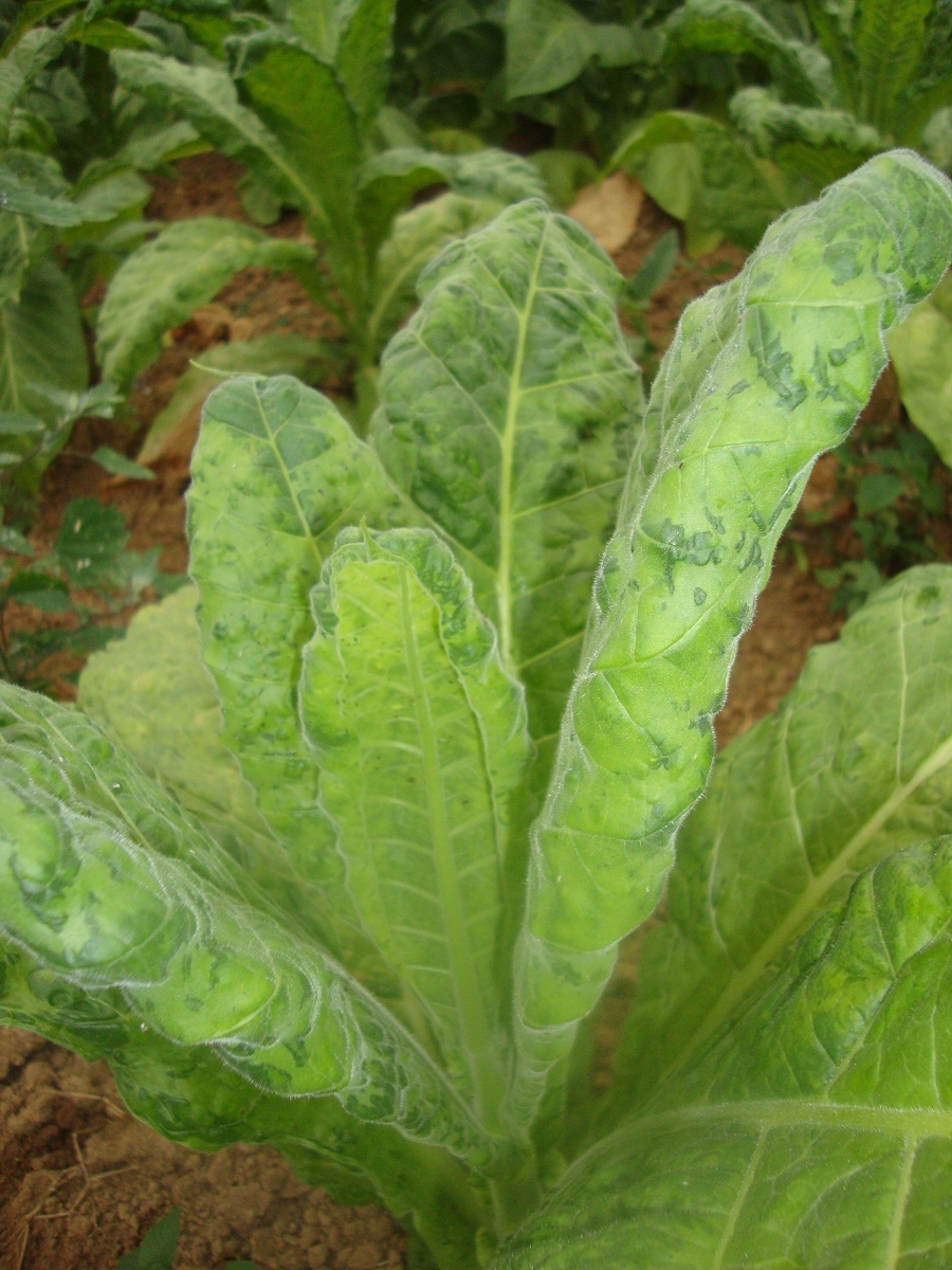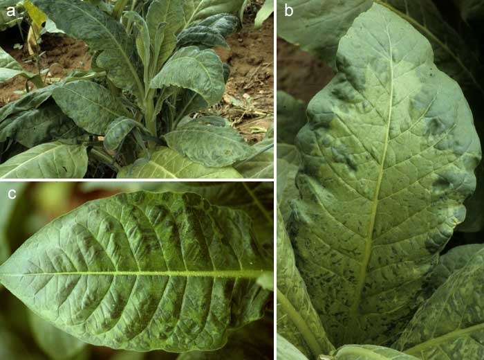 A natureza e gravidade dos sintomas variam com a idade da planta, tipo de tabaco cultivado ou variedades utilizadas. Os sintomas são mais graves nos tecidos jovens e em crescimento.