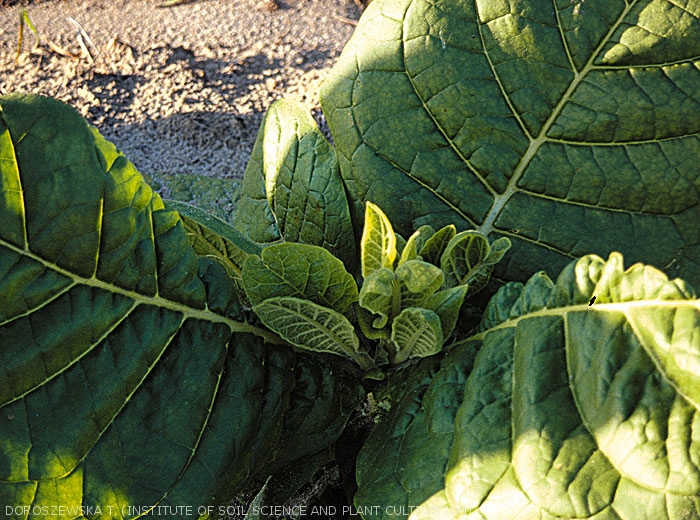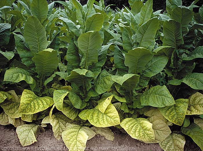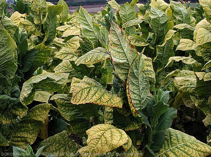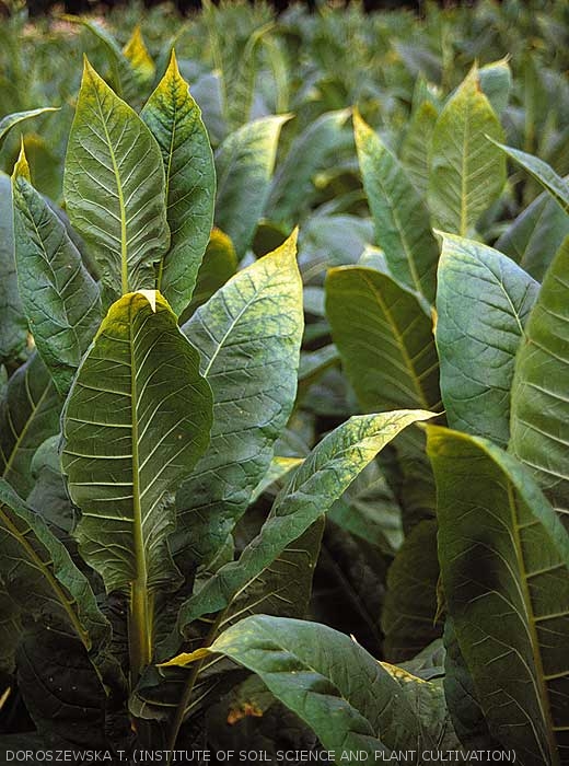Dada esta situação, não é incomum encontrar plantas no campo com fertilização deficiente ou excessiva. Esses distúrbios são chamados de doenças não parasitárias que agrupamos sob o título Problemas nutricionais. Seus sintomas costumam ser amarelados em diferentes graus e em diferentes partes das plantas (figuras 1 e 2). Os dois temas seguintes descrevem as principais deficiências encontradas, seus sintomas e funções fisiológicas perturbadas no tabaco. Quando falamos de deficiências, tendemos a associar deficiências reais a deficiências induzidas.