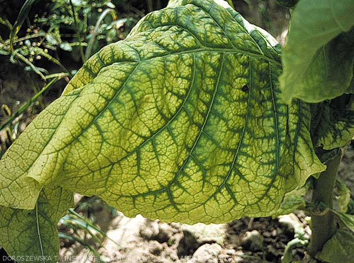Algumas deficiências causam sintomas que ocorrem primeiro nas folhas inferiores da planta, e depois se espalham gradualmente por toda a folhagem. Neste caso, dois sintomas principais são observados: