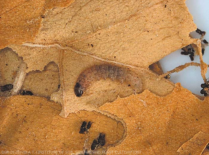 Ephestia elutella Turner (1915) (traça do tabaco, ácaro ou traça do cacau) é um inseto lepidóptero muito cosmopolita (Pyralidae). É capaz de danificar uma enorme variedade de produtos alimentares: cacau, frutos secos, arroz, vegetais desidratados, grãos de café verde, bolos de sementes oleaginosas, mas também folhas de tabaco colhidas (figura 2). As larvas de Ephestia elutella causam danos nas folhas de tabaco armazenadas (figuras 3 a 7). O adulto tem uma envergadura de 14 e 18 mm (figura 7). Na Europa, este inseto pode produzir duas gerações por ano em locais sem aquecimento, mas a espécie se multiplica muito mais rápido em regiões mais quentes.