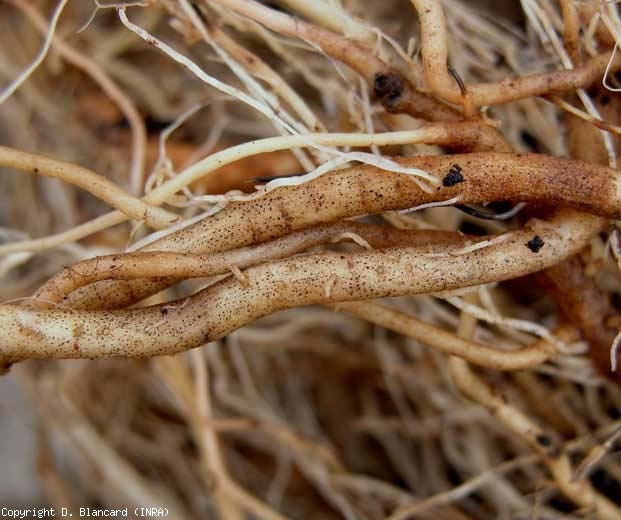 Os métodos de penetração na raiz são bastante comparáveis, uma vez que os apressórios são formados por contato. Observe que a colonização da raiz aumenta com a idade. Além disso, os escleródios e, posteriormente, o micélio que entram em contato com frutas e raízes também podem levar a infecções. Uma vez instalado, o fungo coloniza os tecidos subcuticulares ou o córtex por meio de seu micélio (figura 4) e exerce seu parasitismo por meio de uma protease extracelular. A infecção também pode permanecer presa. Neste último caso, falamos de “infecção latente”. Esse tipo de situação pode ocorrer em frutas verdes, raízes e até caules. Os frutos verdes veem essa latência aumentada na maturidade ou se experimentam baixas temperaturas.