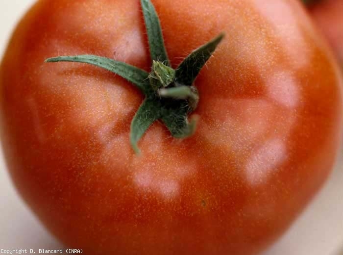 Presença de alterações amareladas muito numerosas e ínfimas, concentradas principalmente na zona peduncular dos frutos (figuras 1 e 2). Essas microlesões dão aos frutos uma aparência opaca e reduzem sua vida útil.